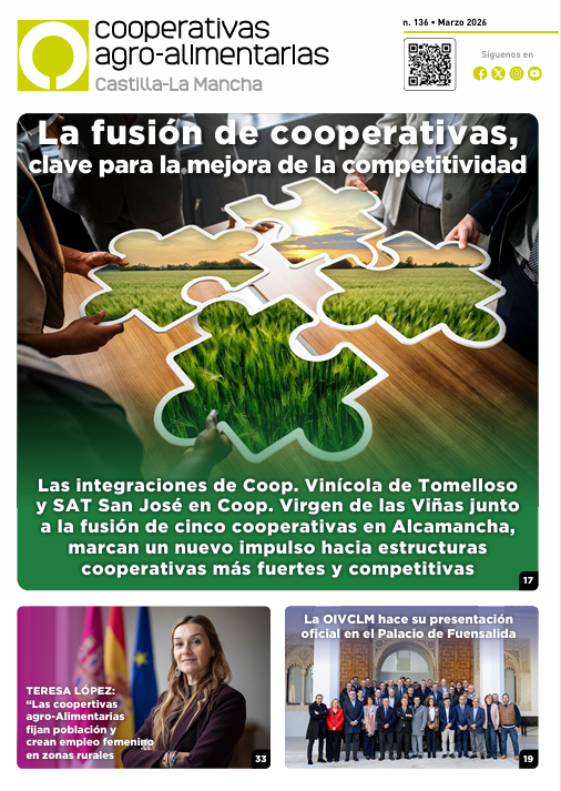 Cooperativas Agro-alimentarias clm Revista Toda la actualidad, noticias y eventos del mundo agroalimentario Revista // 2026 Revista 136 /// Marzo 2026 Descargar Revista Revista // 2025 Revista 135 /// Diciembre 2025 Descargar Revista Revista 134 /// Septiembre 2025 Descargar Revista Revista 133 /// Junio 2025 Descargar Revista Revista 132 /// Marzo 2025 Descargar Revista Revista // 2024 Revista 131 /// Diciembre 2024 Descargar Revista Revista 130 /// Septiembre 2024 Descargar Revista Revista 129 /// Junio 2024 Descargar Revista Revista 128 /// Marzo 2024 Descargar Revista Revista // 2023 Revista 127 /// Diciembre 2023 Descargar Revista Revista 126 /// Septiembre 2023 Descargar Revista Revista 125 /// Junio 2023 Descargar Revista Revista 124 /// Marzo 2023 Descargar Revista